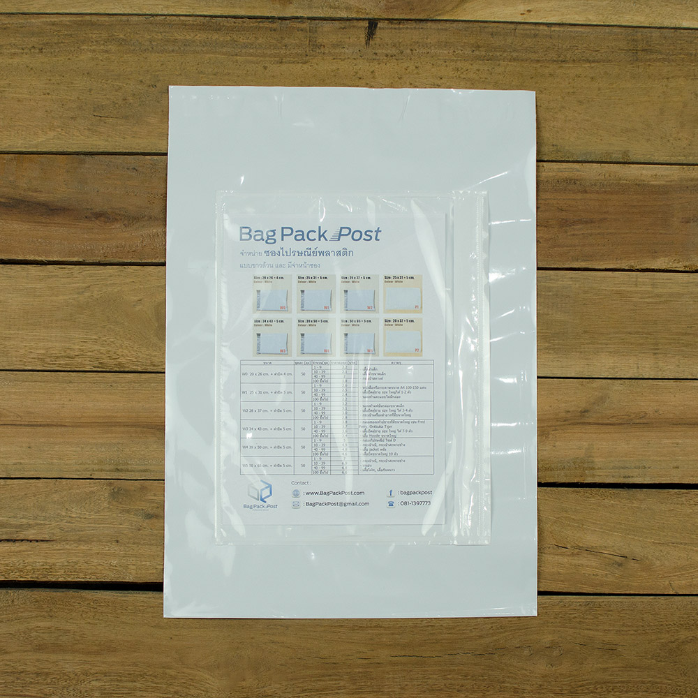 • ซองพลาสติกใสแปะหน้ากล่อง ซองใส่ใบเสร็จ 24x18 cm. (D2) ชุดละ 50 ใบ